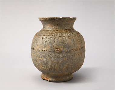 하동 622 일대의 삼국시대(백제) 집터에서 출토되었다. 단지의 몸통은 둥글며, 목 부분은 비스듬하게 좁아지다 밖으로 벌어진 입술과 이어진다. 몸통에는 가로세로가 일정한 간격으로 직각이 되는 두들개 흔적이 있다.