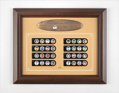 2002 한일월드컵 본선진출 32개국 기념품 액자이다. 동그란 모양에 ‘2002 FIFA WORLD CUP’ 영문을 돌려 새기고 가운데 각국 국기를 표현하였다. 국기 아래쪽에 해당 나라이름을 넣어 A조부터 H조까지 조별 국가를 알 수 있도록 했다.