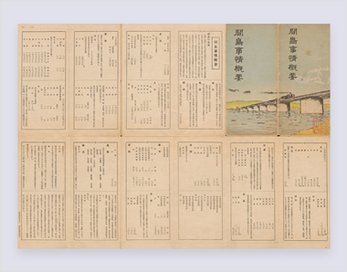 간도지역의 인문ㆍ자연환경을 간단히 소개하는 개요서다. 앞면에는 간도지역의 위치ㆍ지세ㆍ면적ㆍ기후ㆍ인구ㆍ산업ㆍ교통ㆍ금융ㆍ종교ㆍ관할도읍 등에 대한 정보가 있고 뒷면에는 간도지역의 주요산업시설 및 철도노선이 그려져 있다.