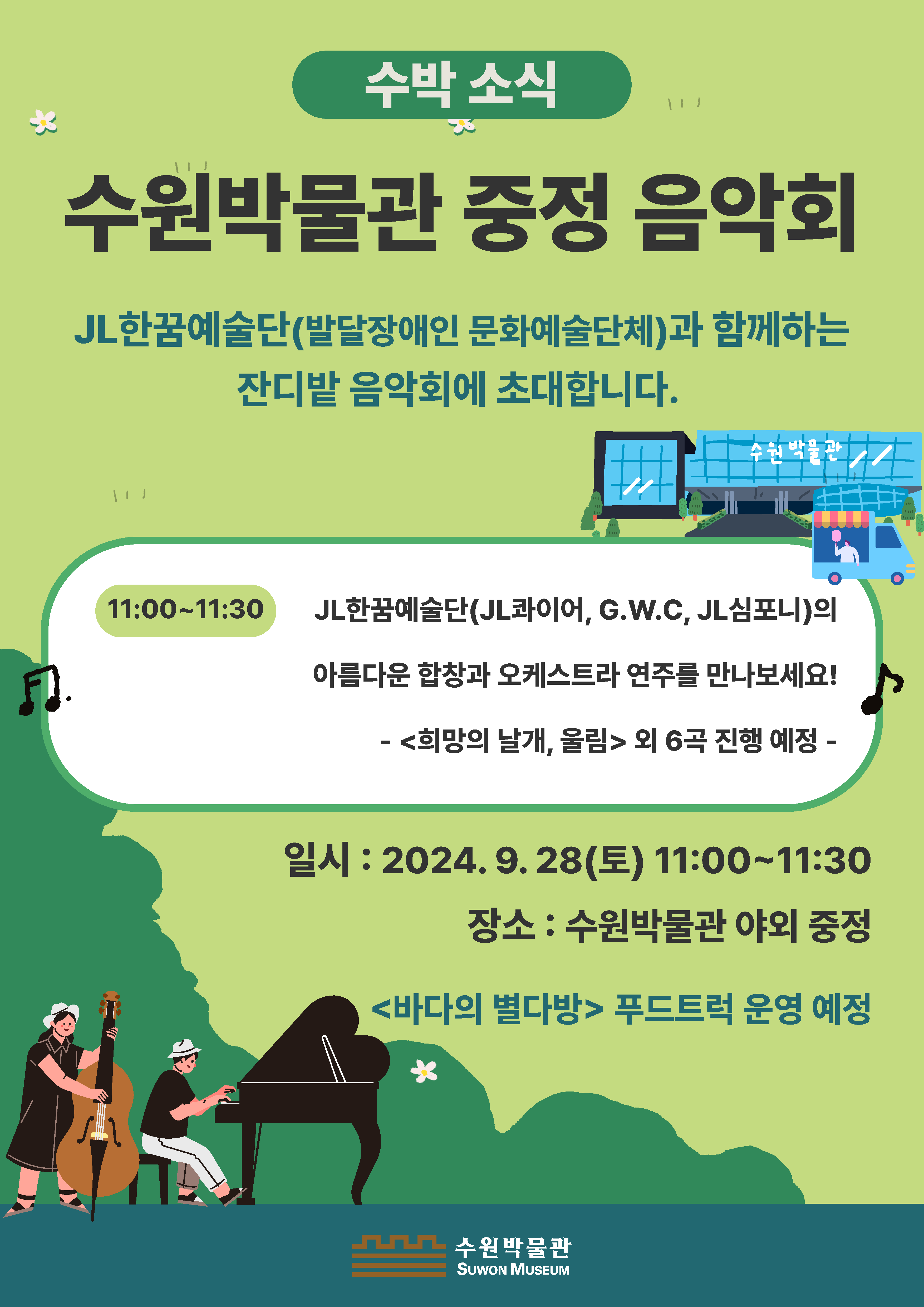 수원박물관 야외 중정에서 잔디밭 음악회를 개최합니다!