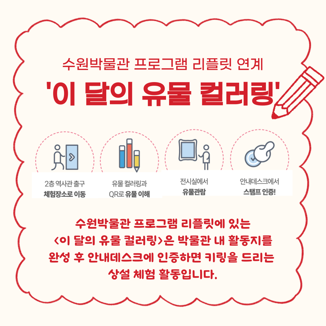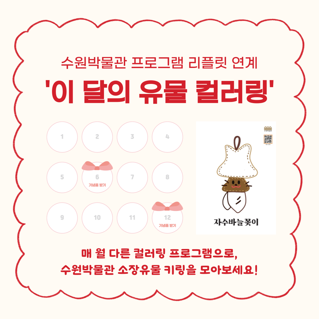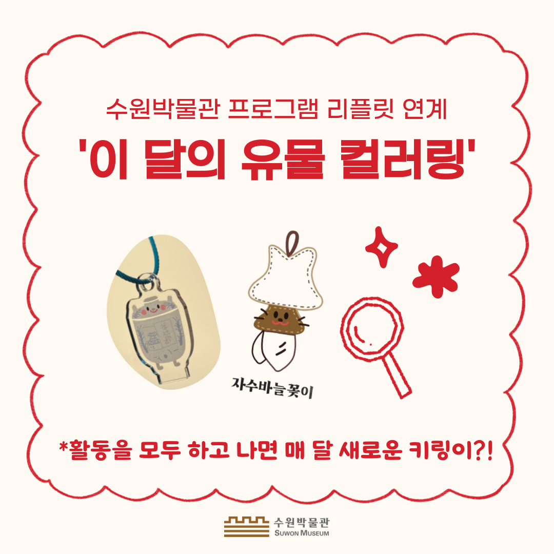 #수원 #수원박물관 #박물관 #키링 #소장유물 #컬러링 #QR #스탬프 #자수바늘꽂이 #청동거울 #고인돌 #인장 #화홀학술병 #비석 #출토복식 #부채 #일원권지폐 #자개상 #지도 #팔달문 동종