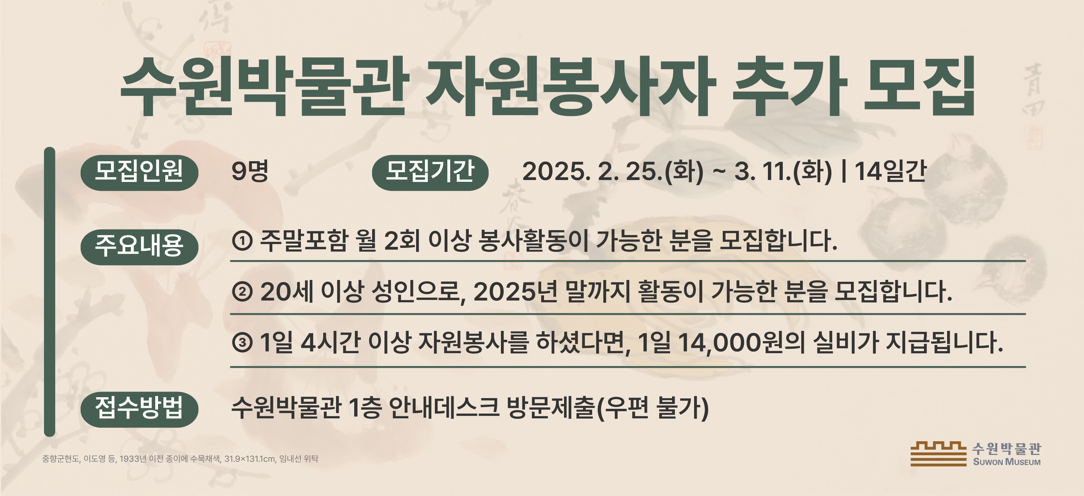 수원박물관 어린이체험실 자원봉사자 추가 모집 안내