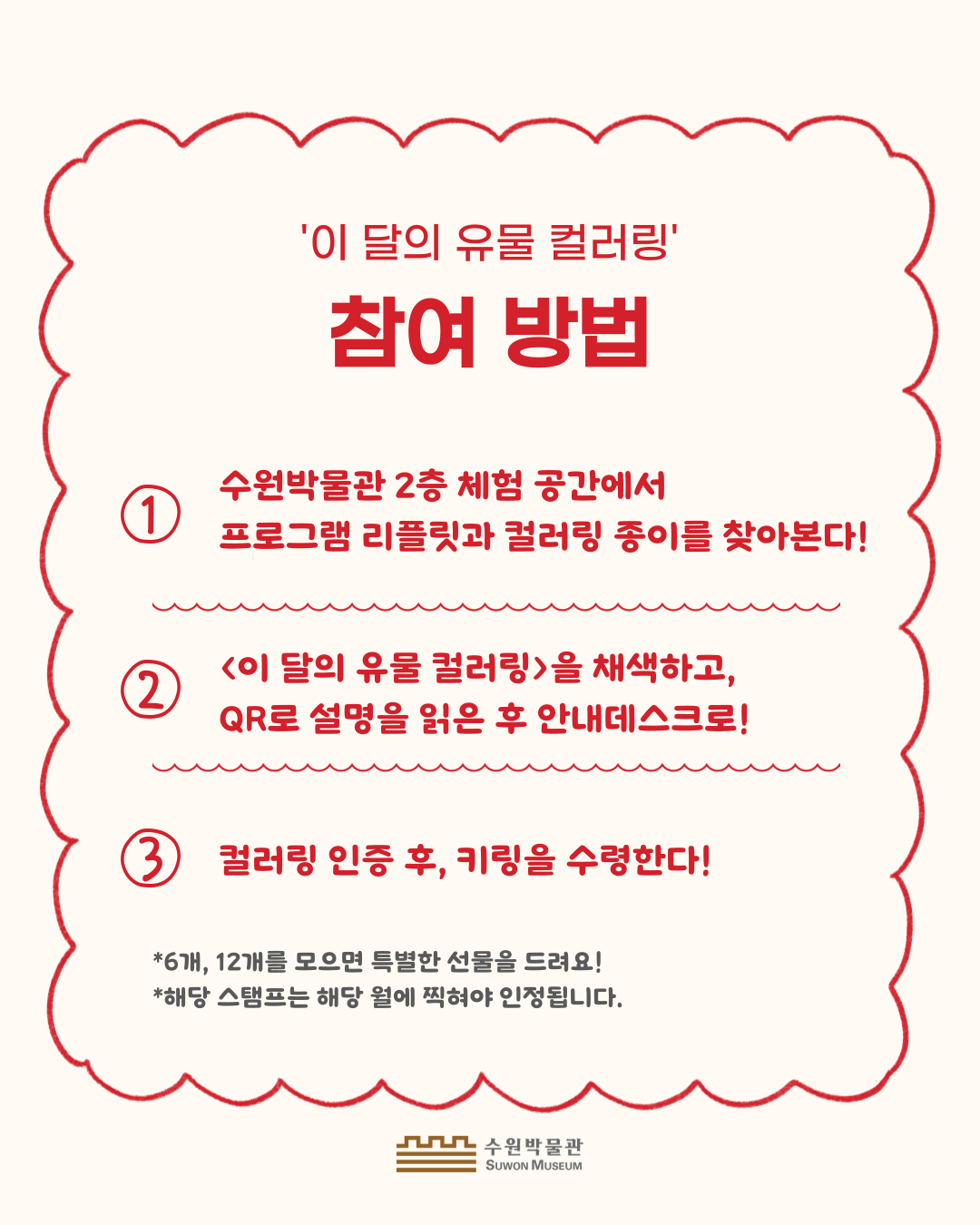 수원박물관 프로그램 리플릿과 연계한 상설 체험 활동인 <이 달의 유물 컬러링>은
